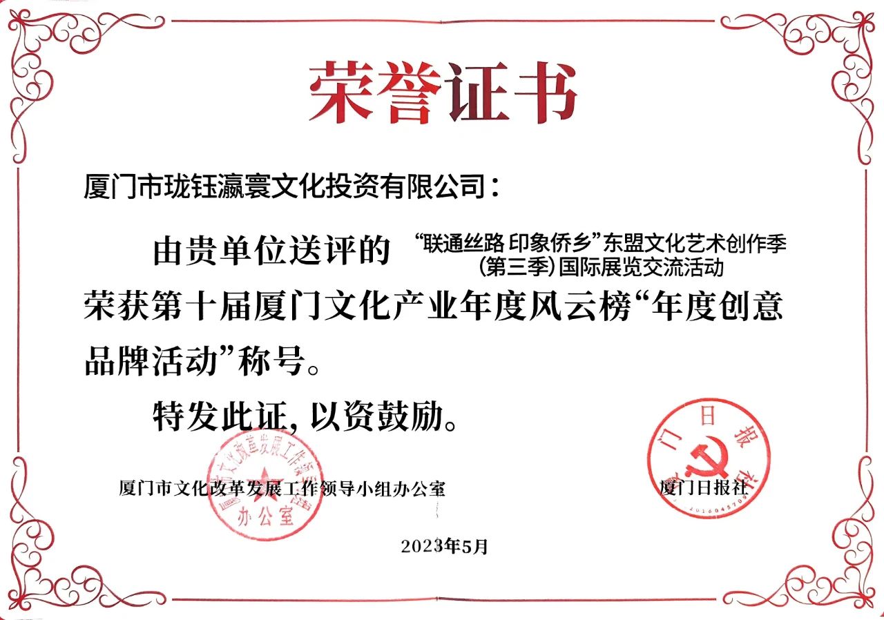 热烈祝贺“东盟文化艺术创作季”荣获第十届厦门文化产业年度风云榜“年度创意品牌”